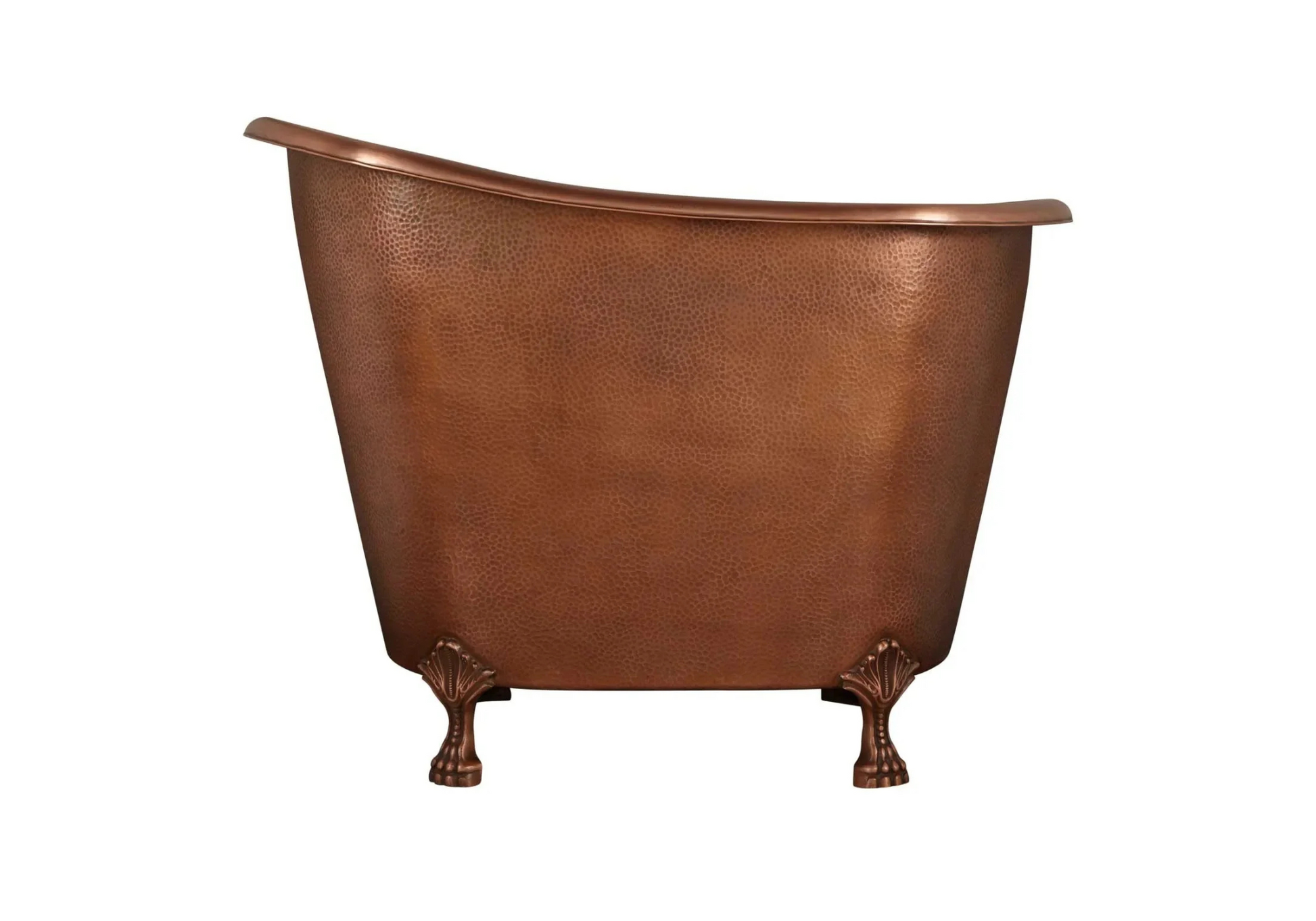 The Copper Bath Tubs are hand made from 16 gauge copper or brass. The small Ahlia copper hammered clawfoot bath is handmade with dark antique copper finish.